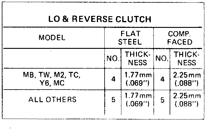 a. Install steel plate and alternate with composition plate, refer to the image for correct number of plates to be used. To install the new lo and reverse clutch assembly components and for proper selection of the lo and reverse selective backing plate, proceed as follows: