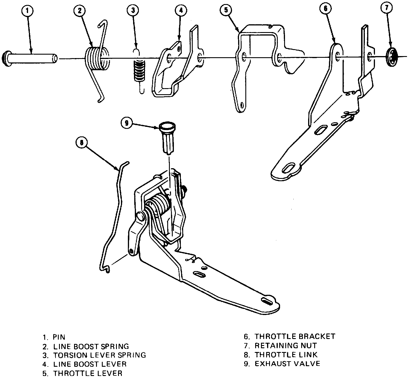 10. Inspect throttle lever and bracket assembly for sticking, binding or damage. Ensure assembly operates freely without restrictions.