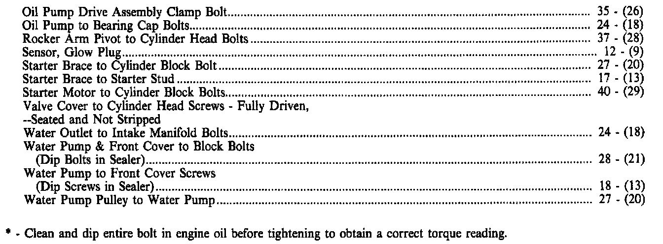 Torque Specifications: