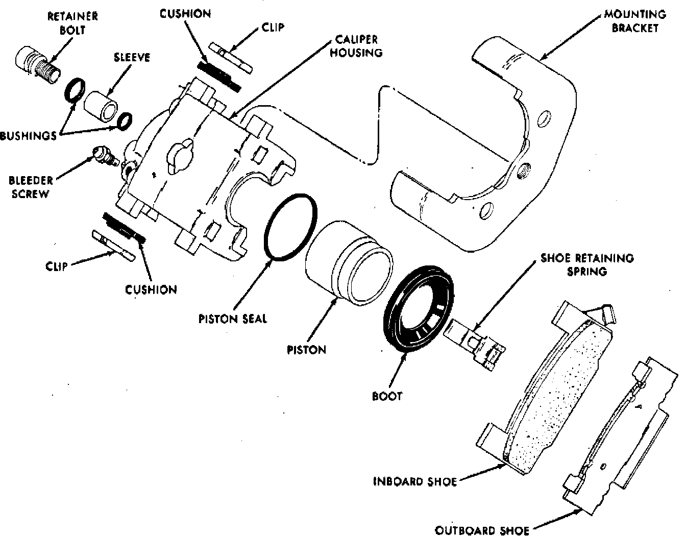 Fig. 2 Delco-Moraine single piston disc brake with single mounting bolt: