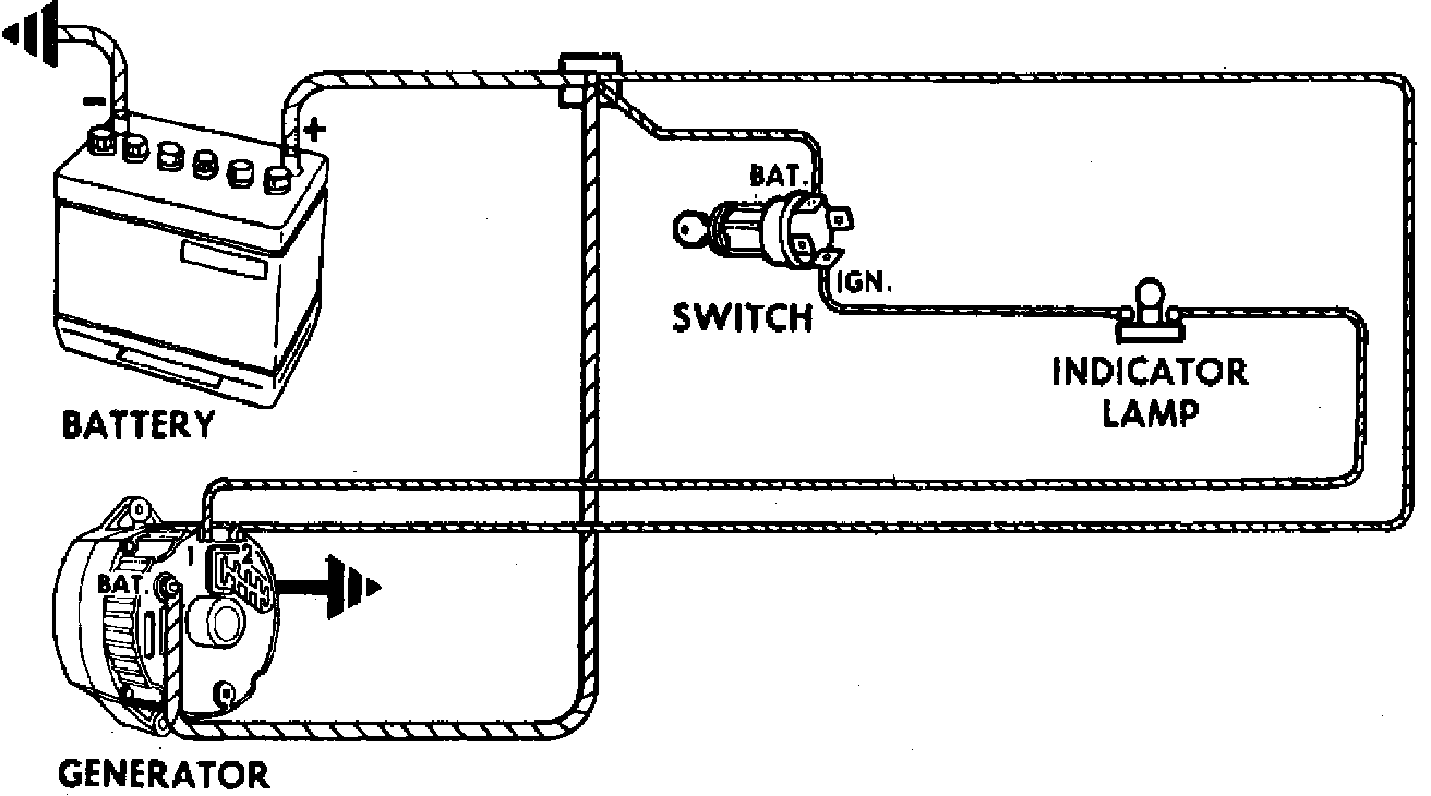 Fig. 2 Typical charge indicator lamp wiring. Delco SI type charging system:
