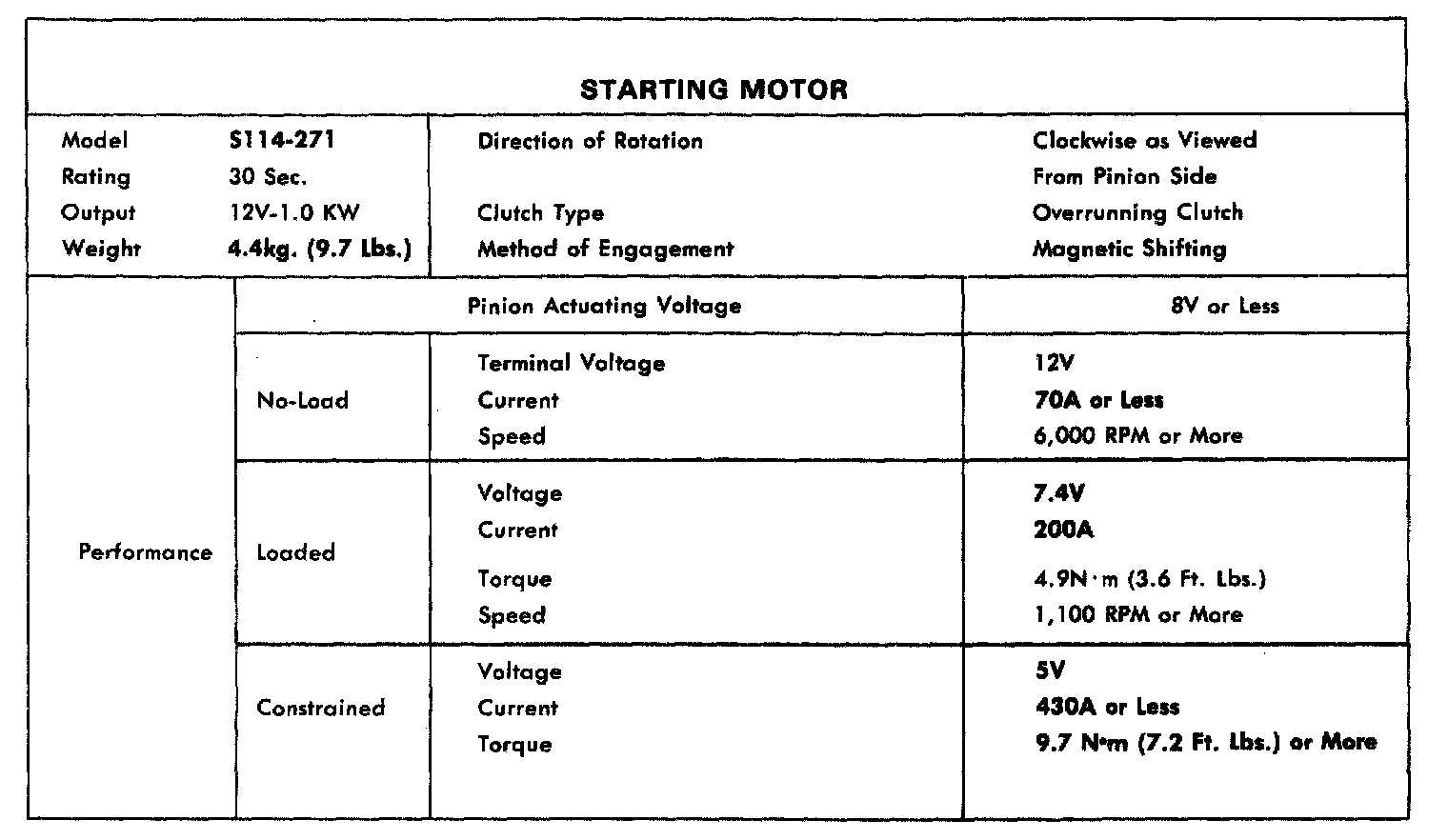 STARTER SPECIFICATIONS