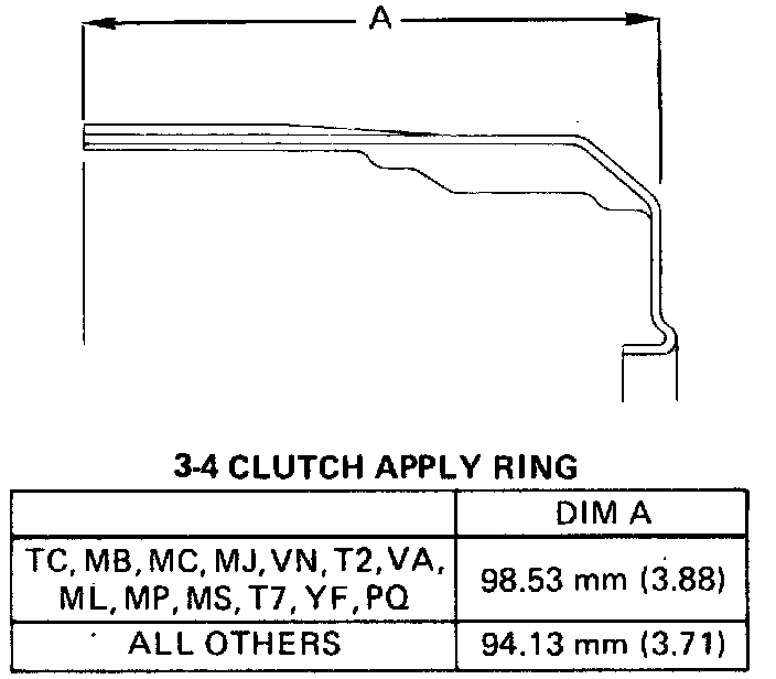 7. Inspect 3-4 clutch apply ring for bent tangs and correct tan length. Refer to image.