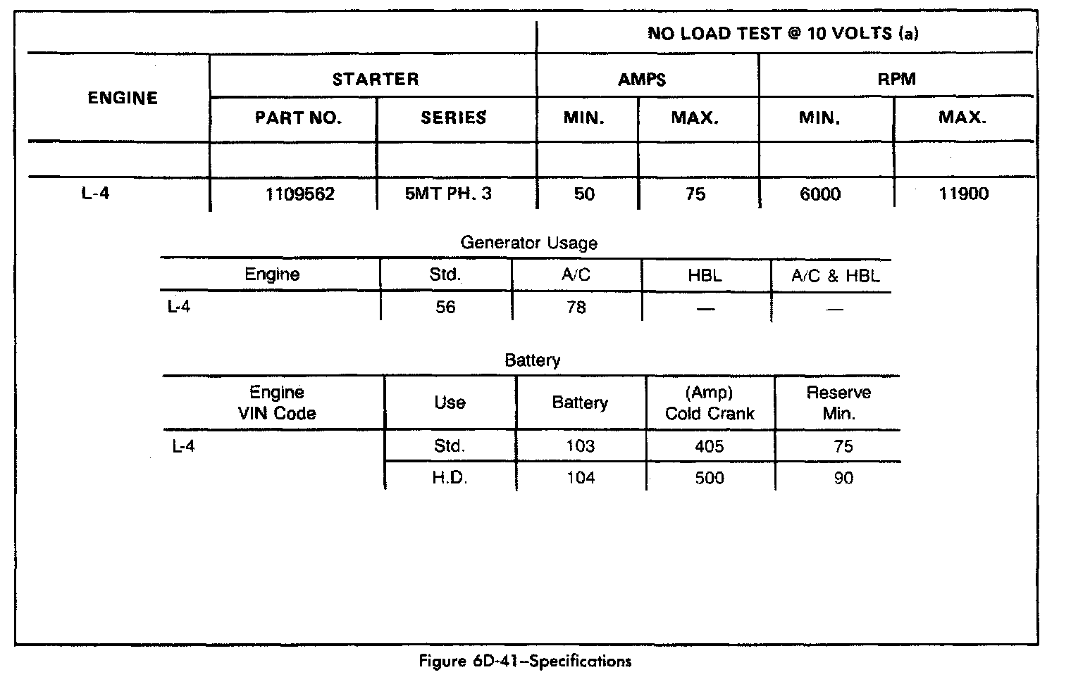 Starting and Charging: Specifications