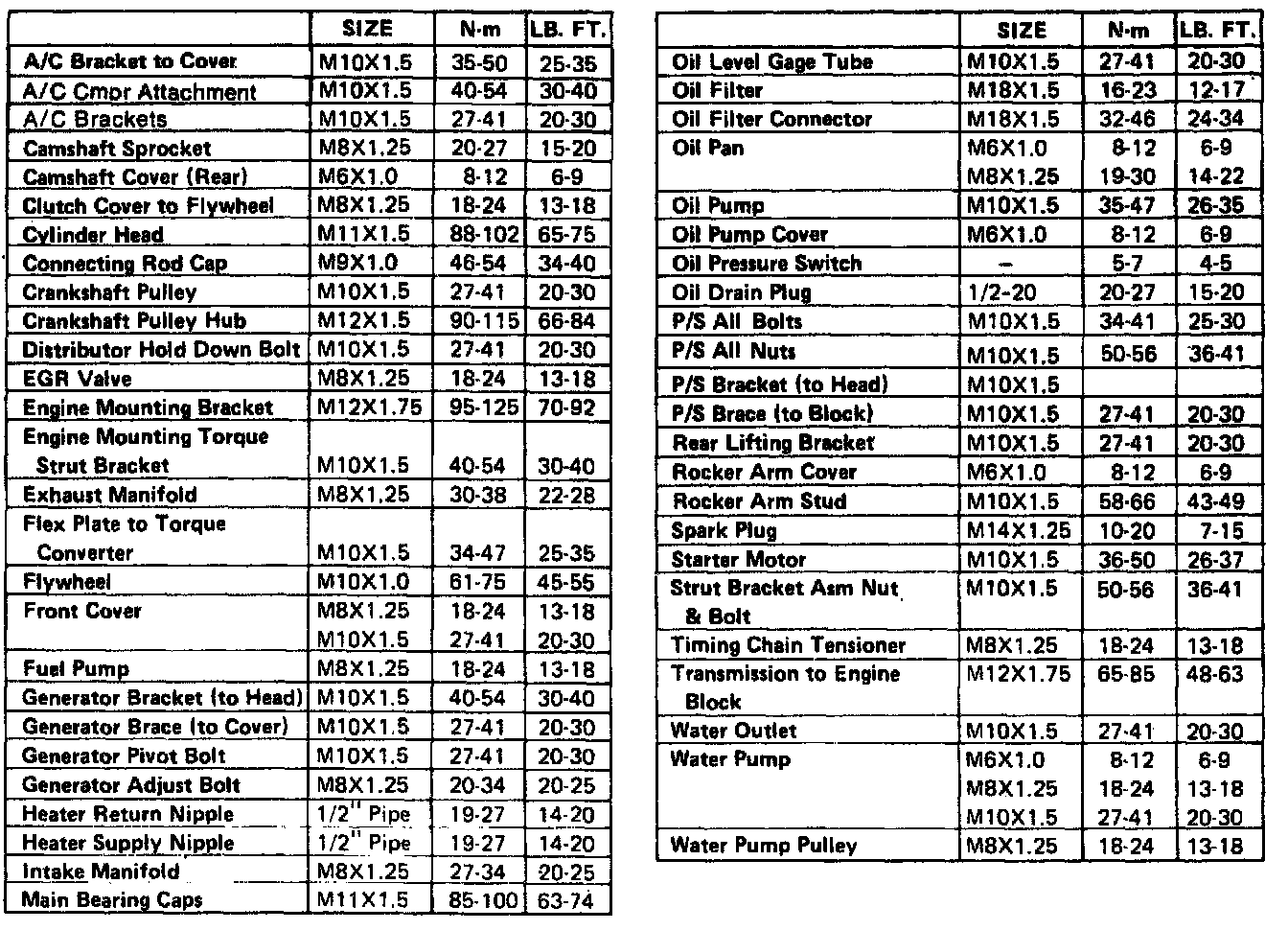 Torque Specifications:
