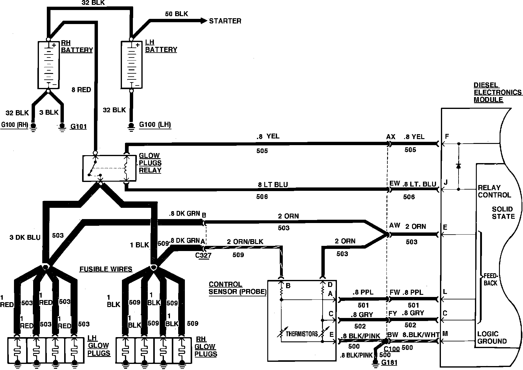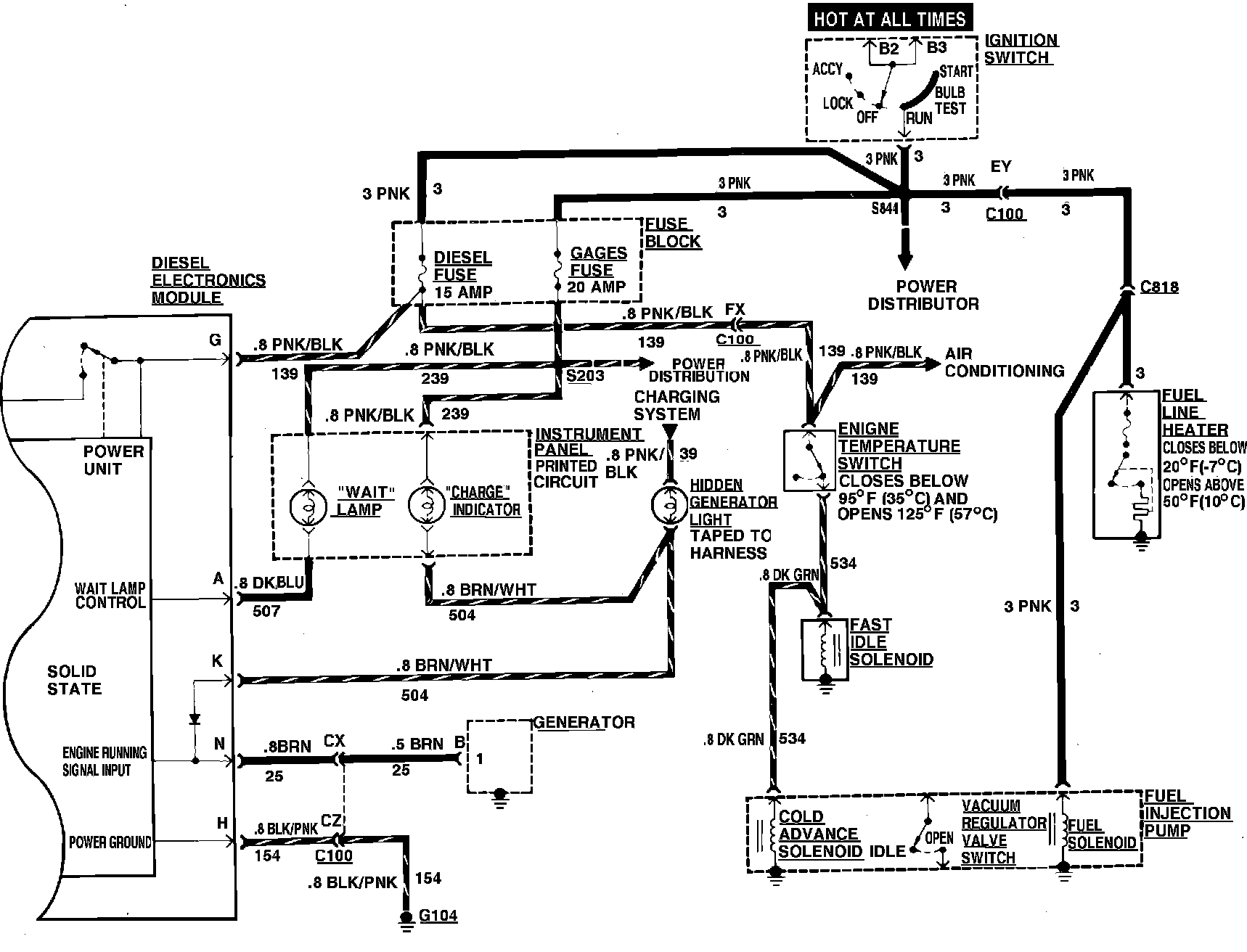 Fig. 8 Glow plug system wiring diagram (Part 1 of 2). 1983