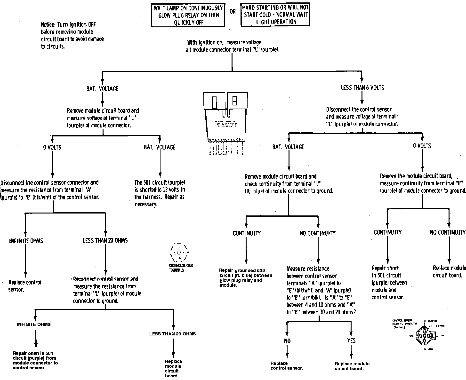 Fig. 11 Glow plug system diagnosis chart. 1983