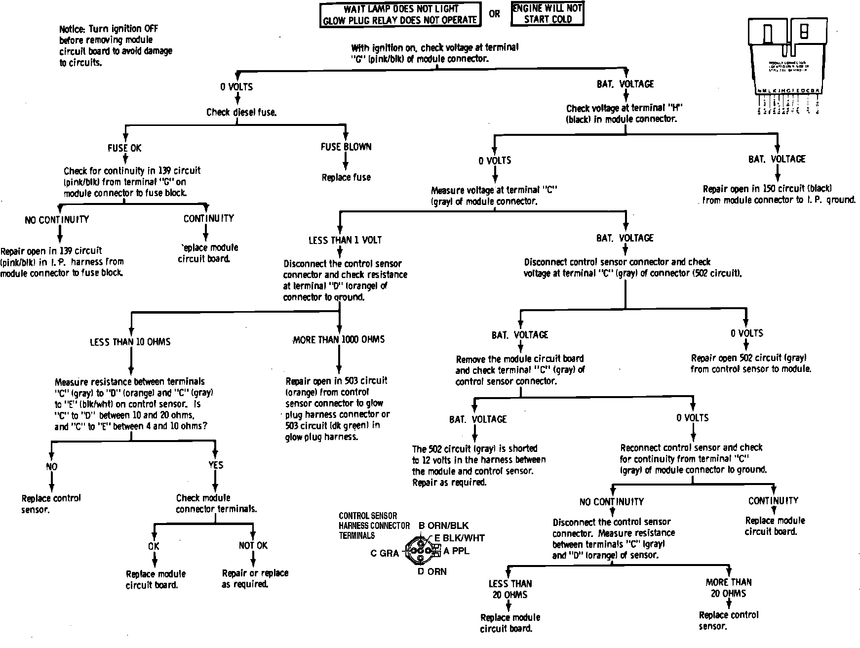 Fig. 14 Glow plug system diagnosis chart. 1983
