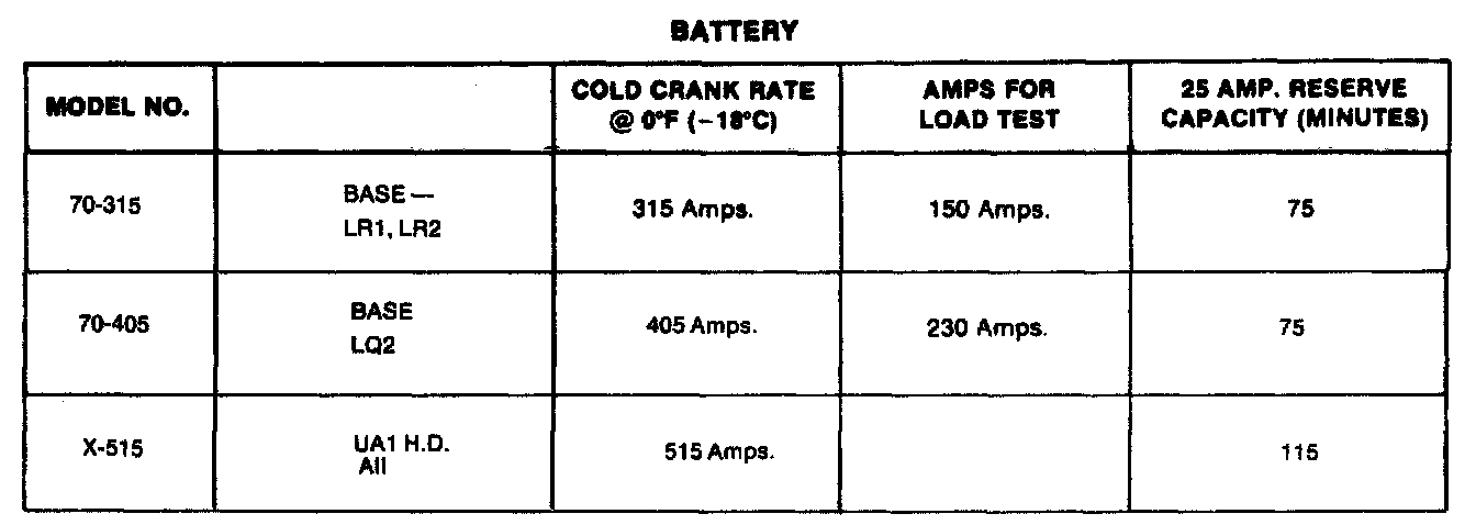 Starting and Charging: Specifications