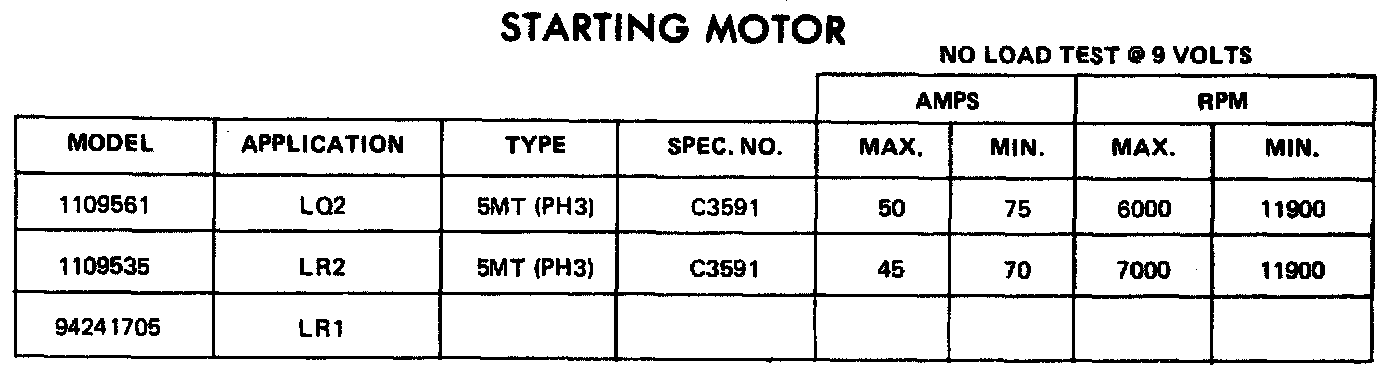 STARTER SPECIFICATIONS