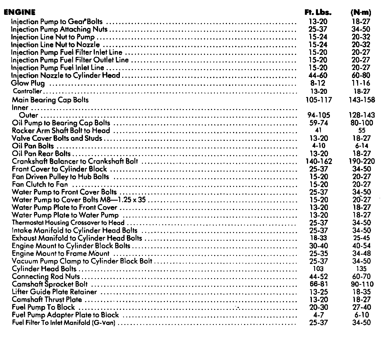 Torque Specifications: