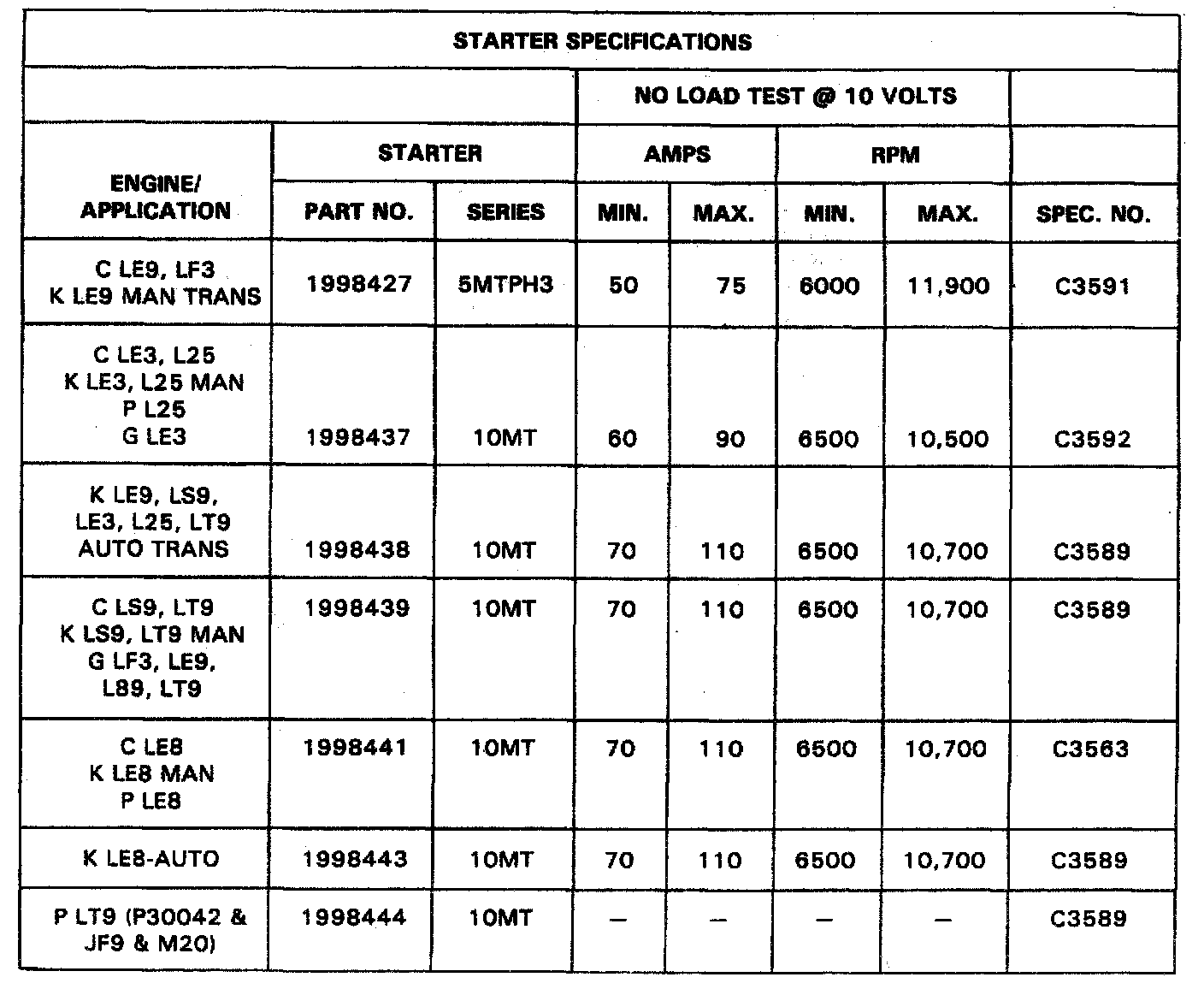 STARTER SPECIFICATIONS