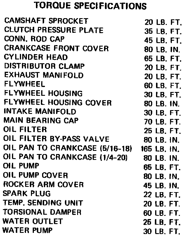 Torque Specifications - Small Block (Incl. 229 V6):