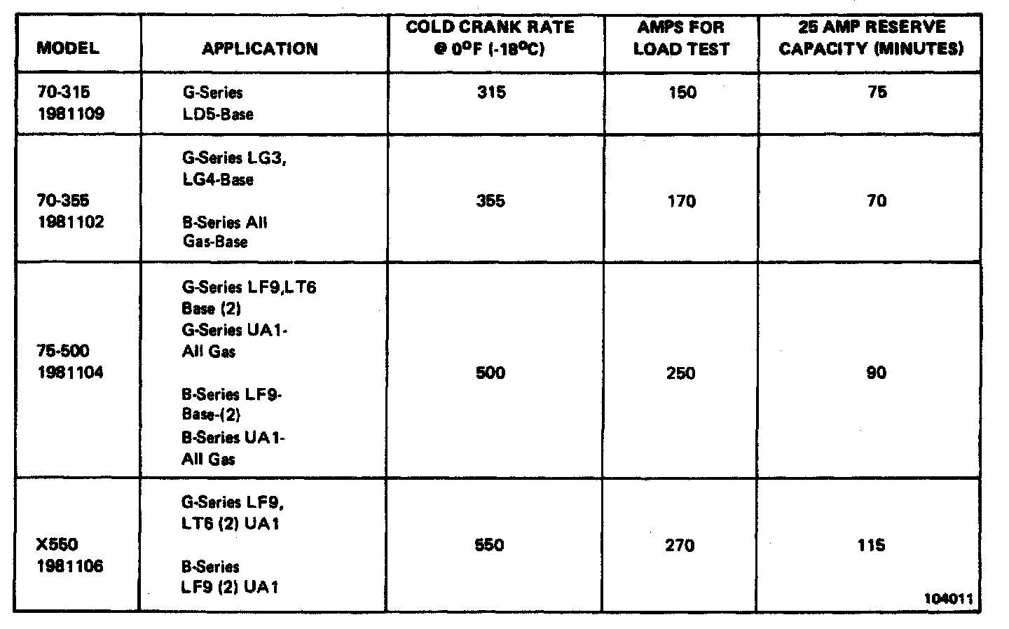 Starting and Charging: Specifications