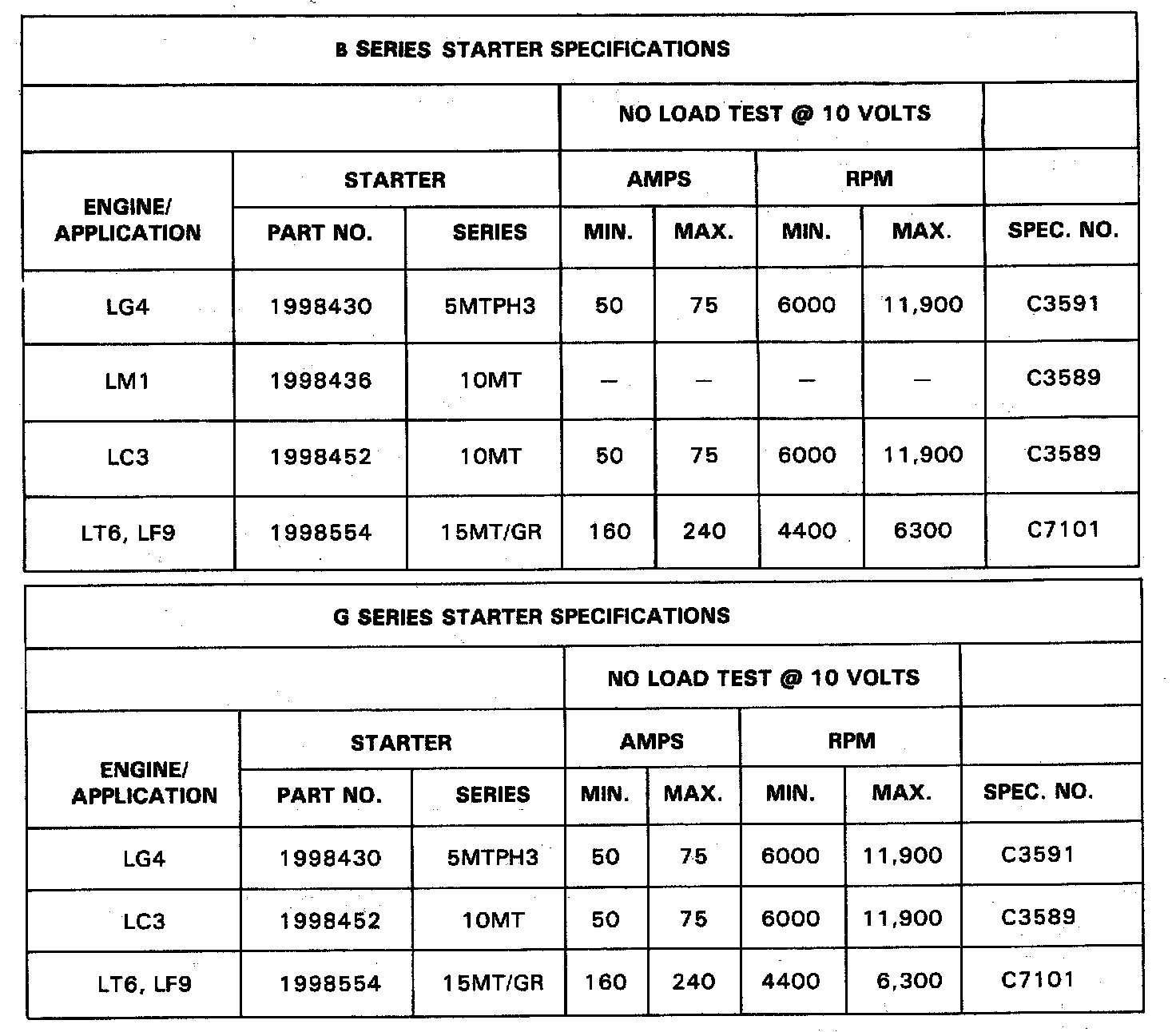 STARTER SPECIFICATIONS
