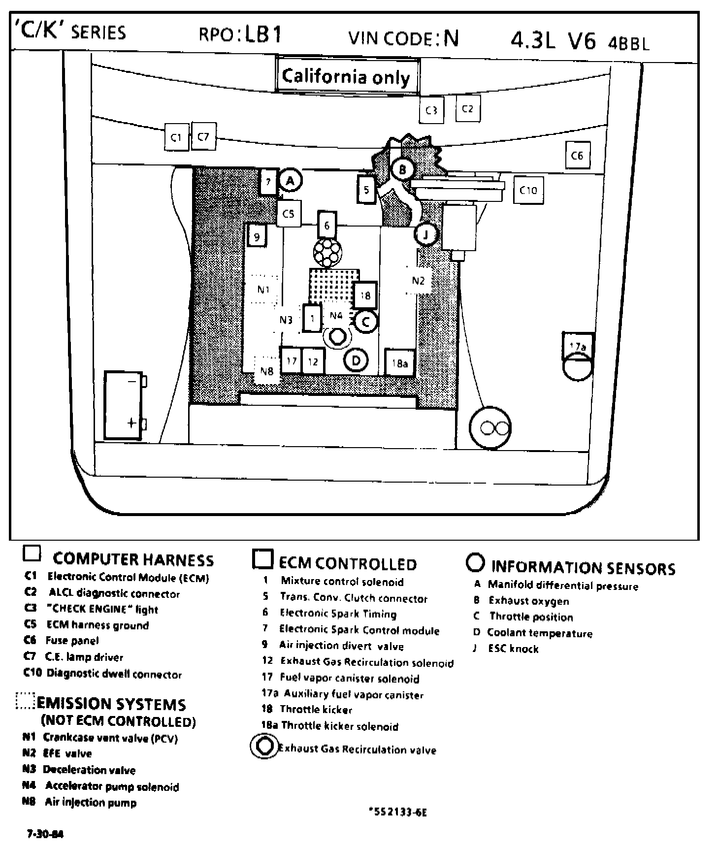 Figure 1 Component Locations - 4.3L (CK Series) - Calif.: