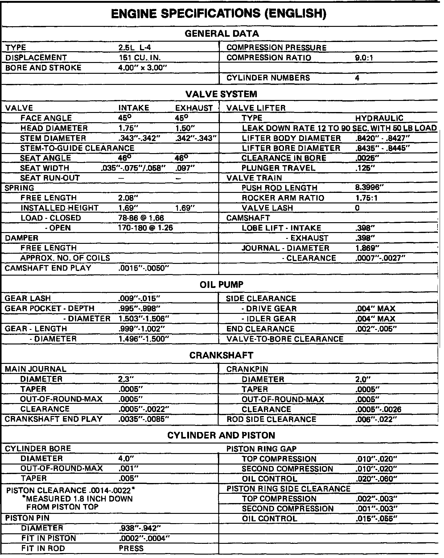 Camaro L4-151 2.5L