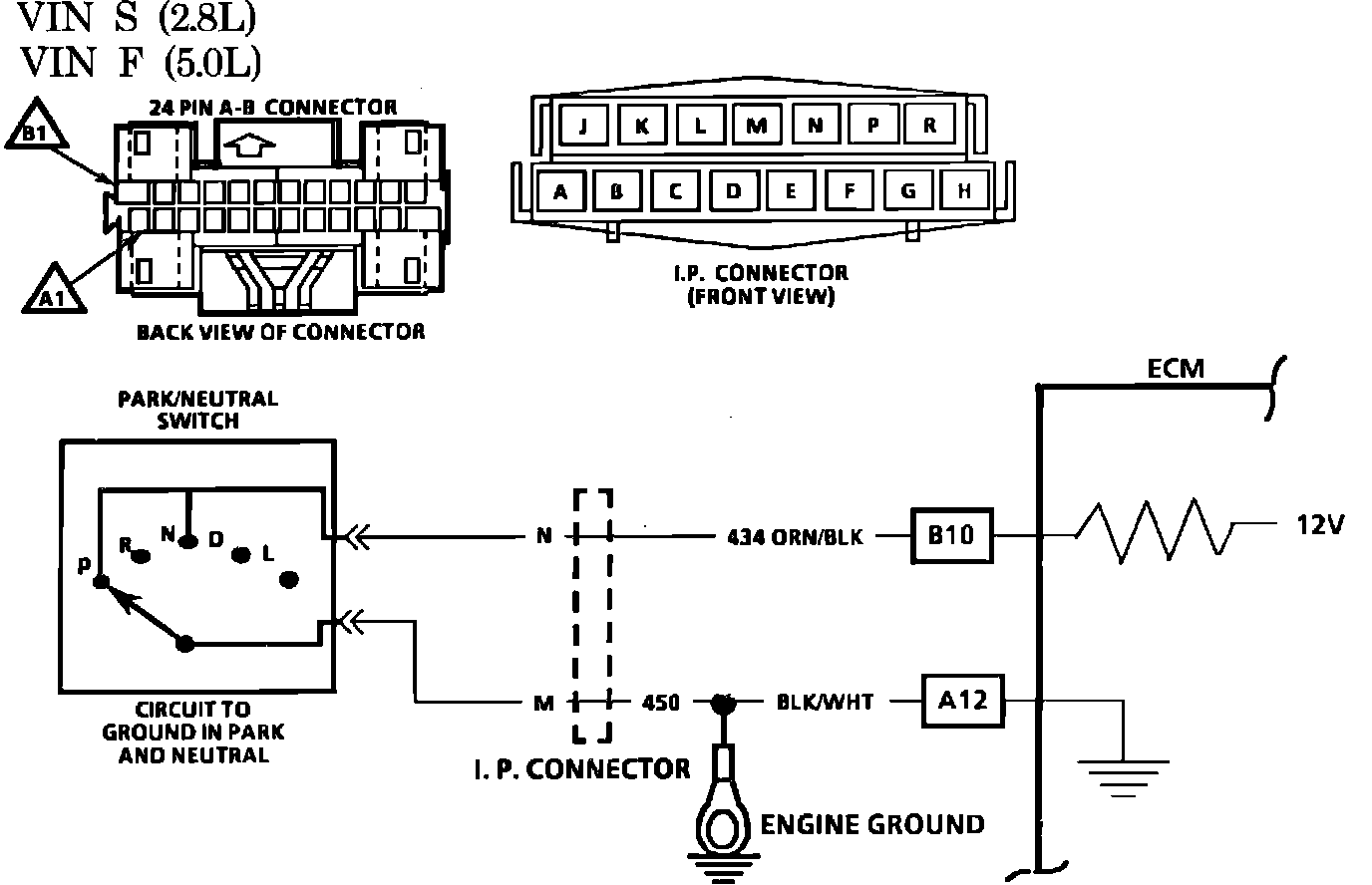 The Park/Neutral Switch contacts are a part of the Neutral Start switch and are closed to ground in park or neutral, and open in drive ranges.