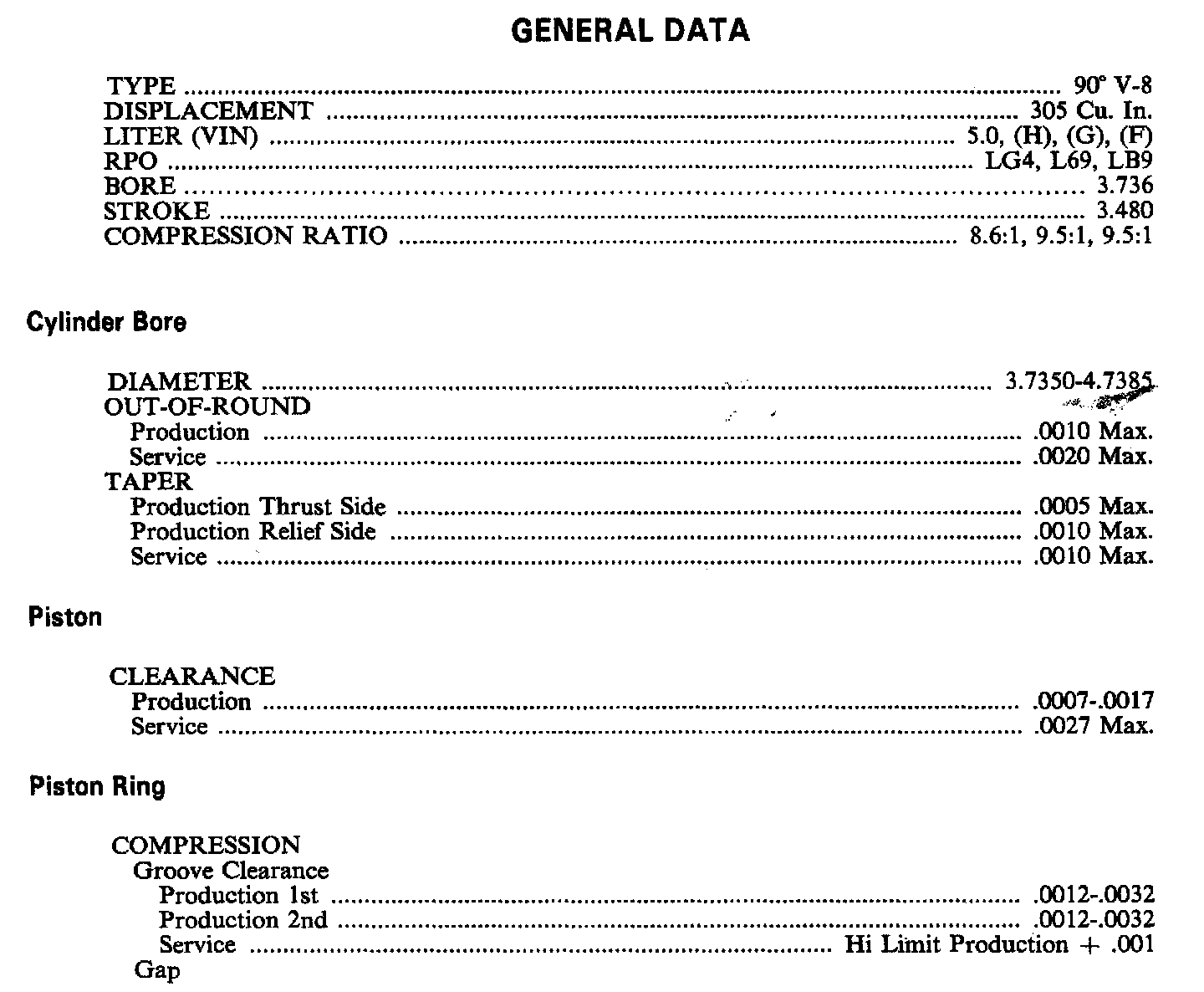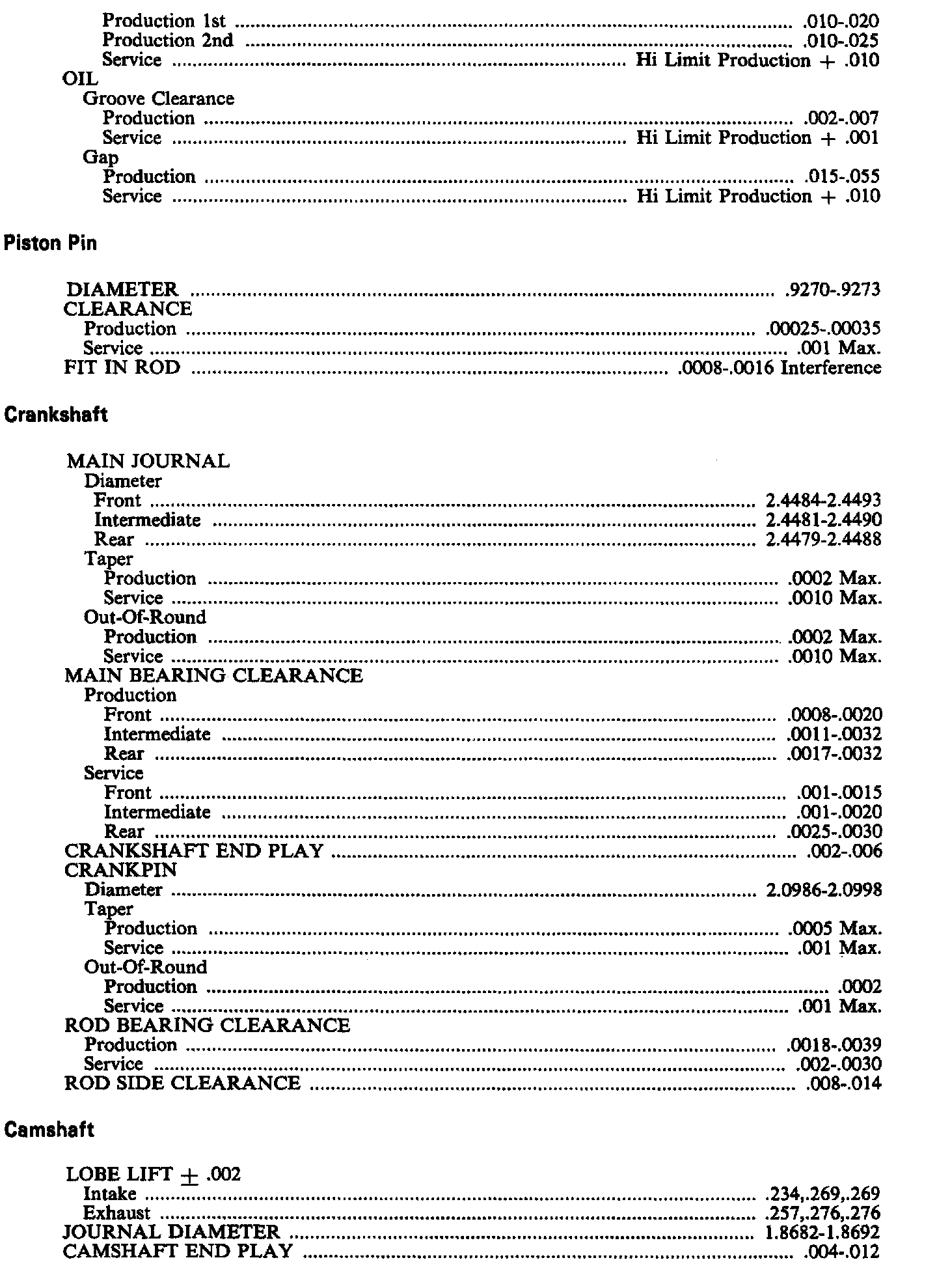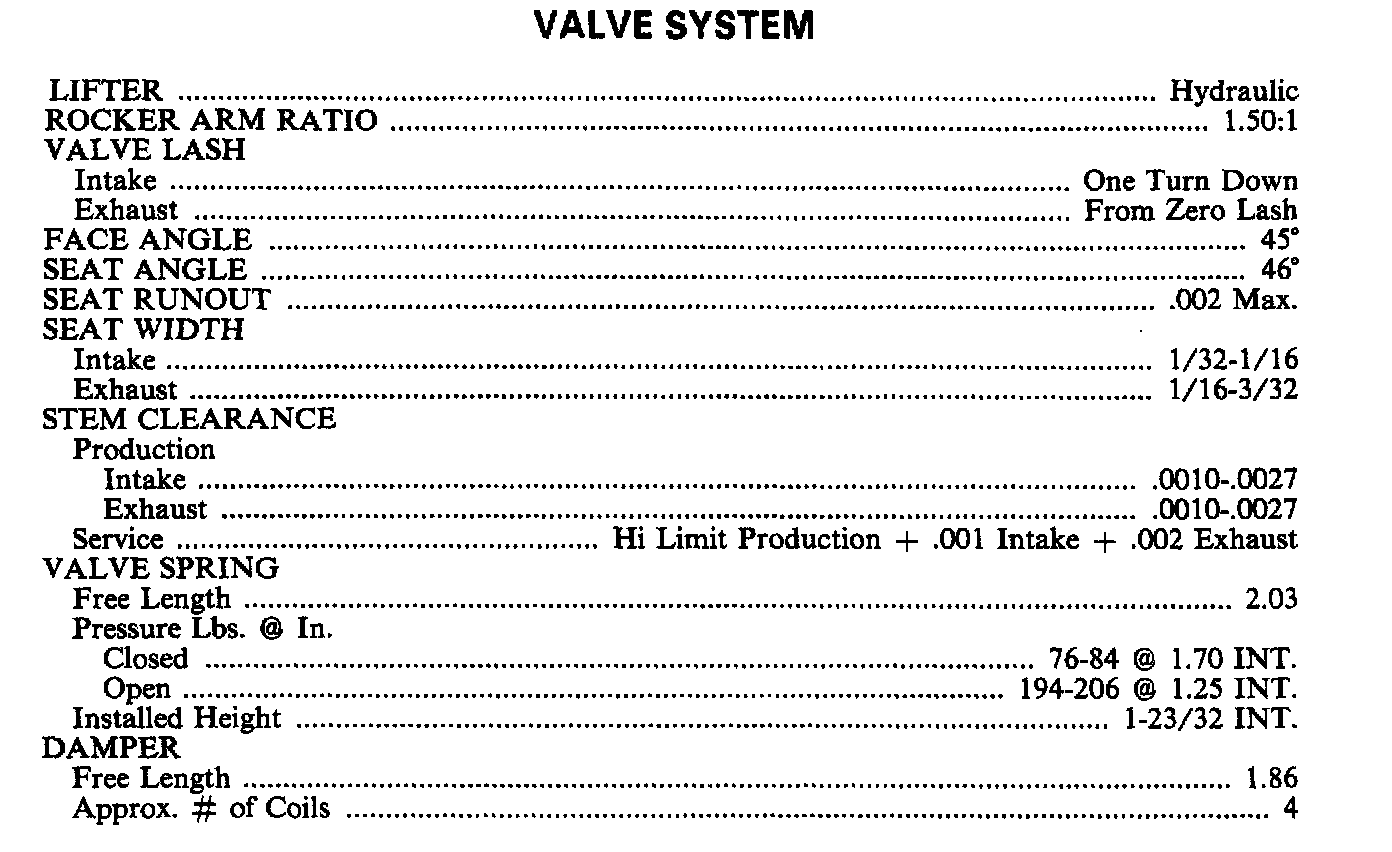 Continued Engine Specifications:
