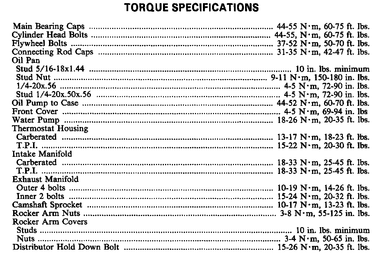 Torque Specifications: