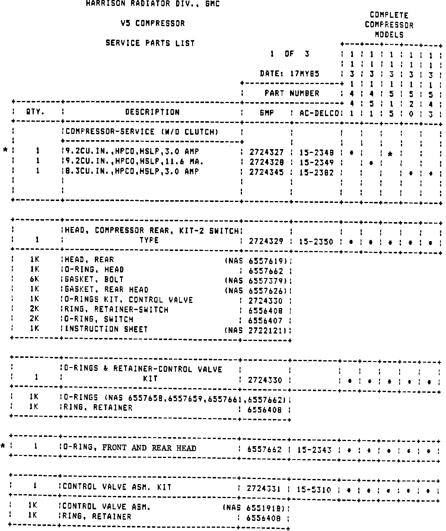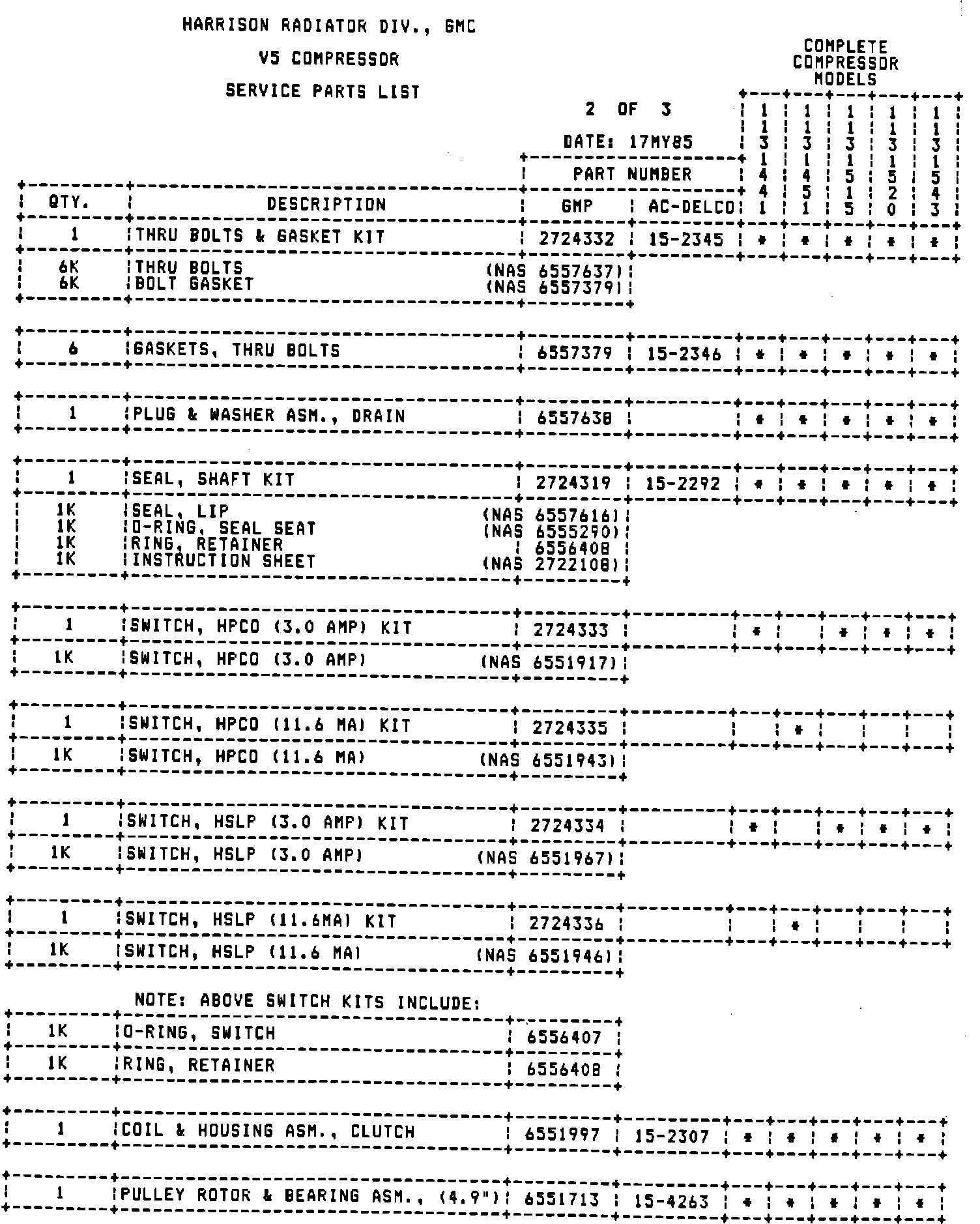 NOTE: COMPRESSOR PART NUMBERS