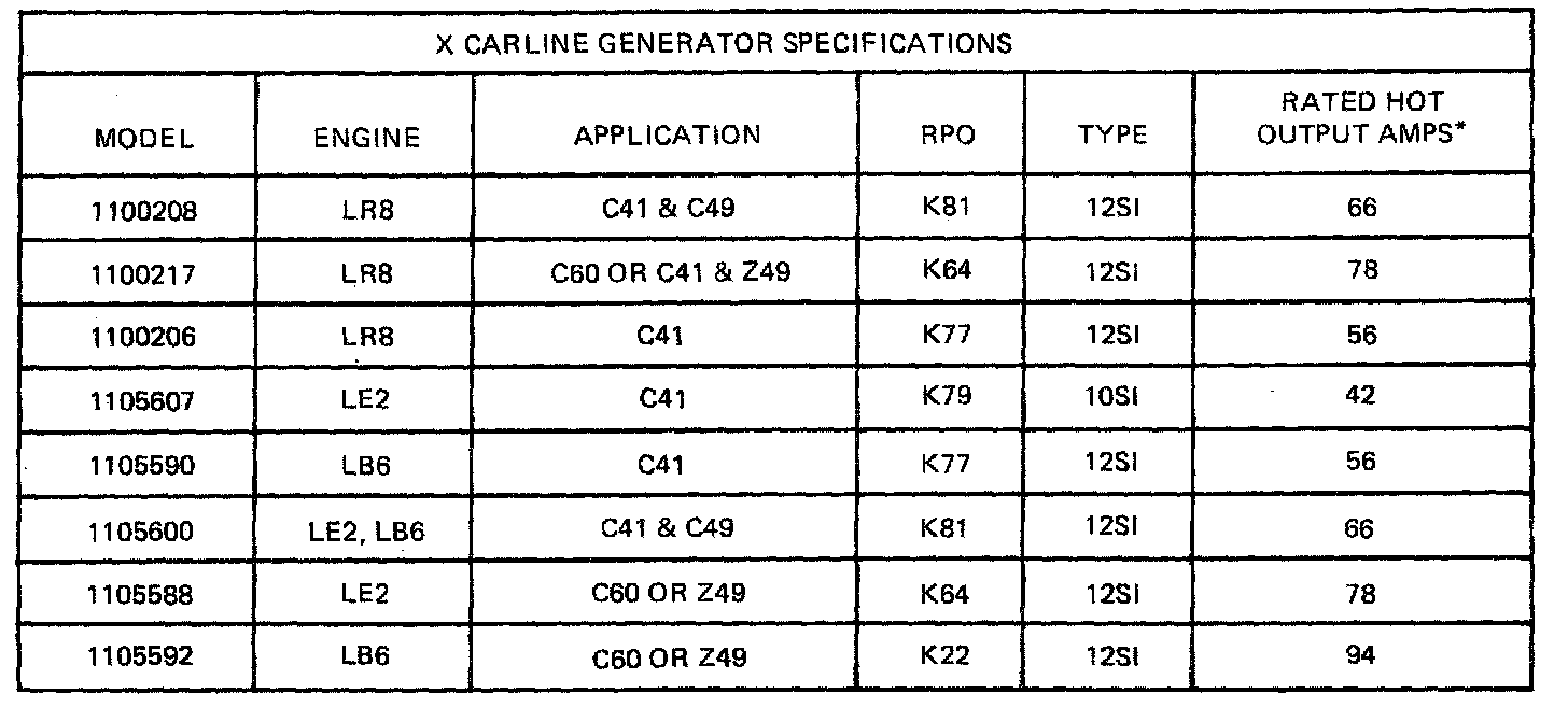 Starting and Charging: Specifications