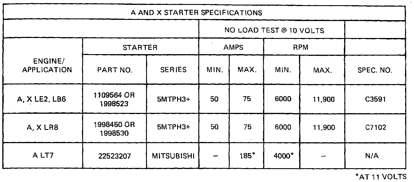STARTER SPECIFICATIONS