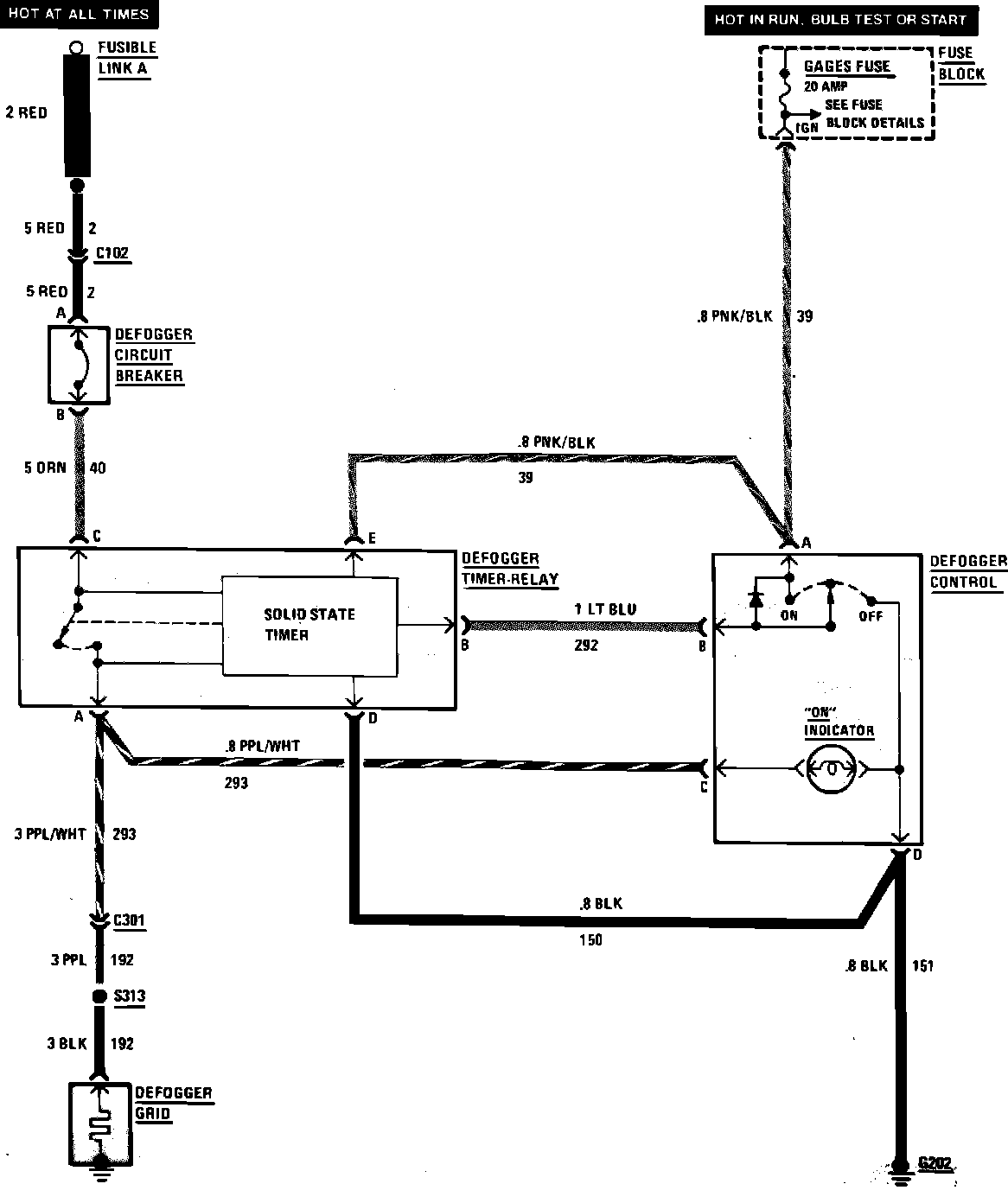 Fig. 29 Rear Defogger Wiring Circuit. 1985 Chevette & T1000: