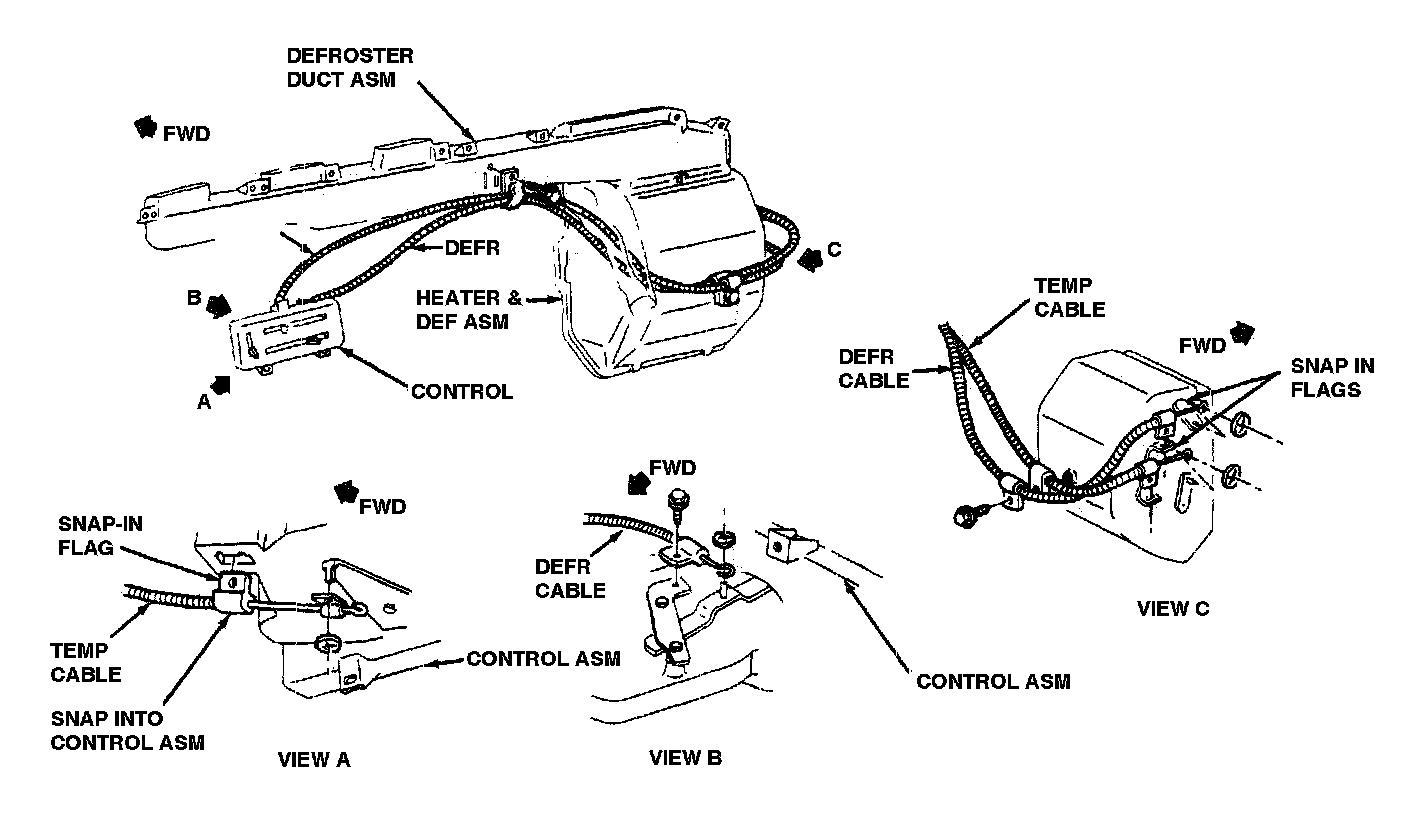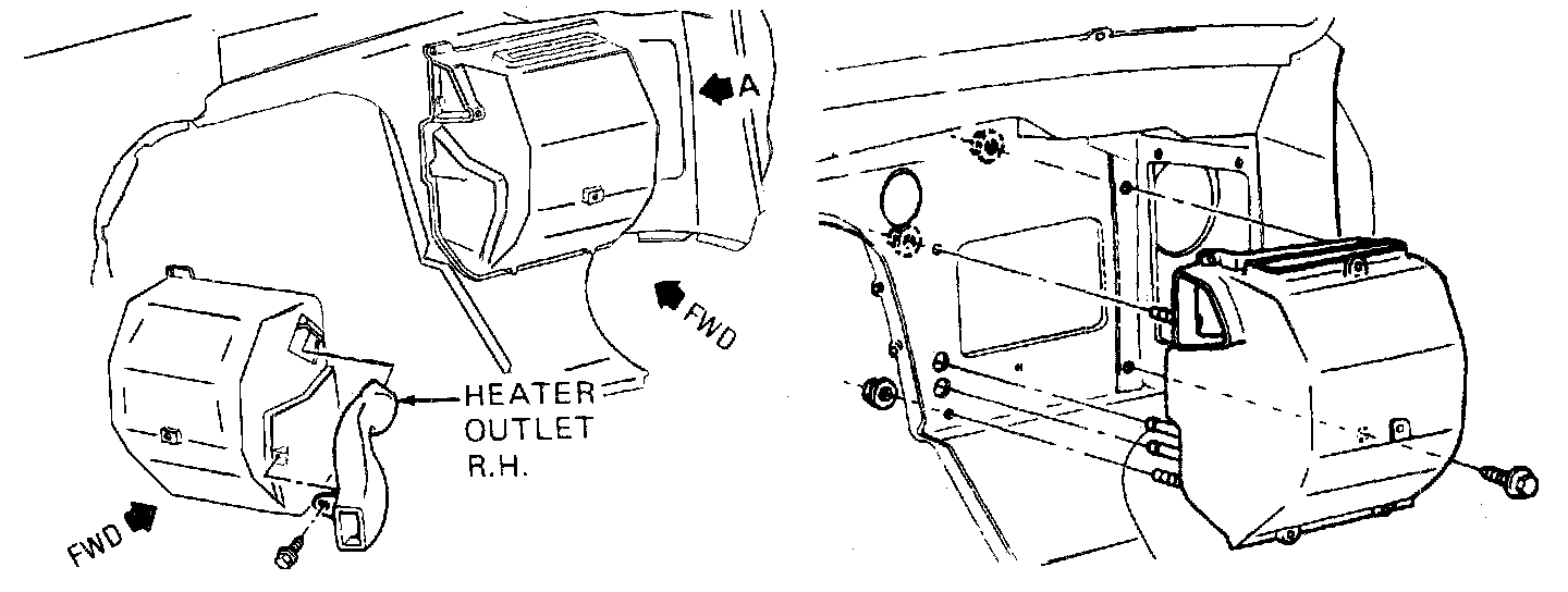 8. Remove defroster duct to distributor case attaching distributor to heater case.