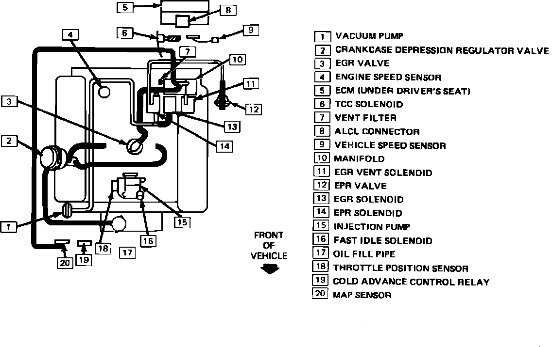 Fig. 118 Emission components locations. 1985 V8-379 Diesel G Series light duty emissions Calif.: