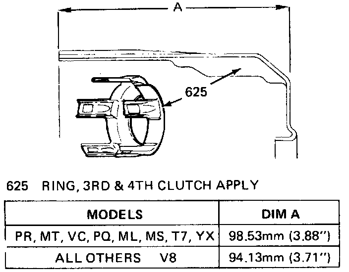 7. Inspect 3-4 clutch apply ring for bent tangs and correct tan length. Refer to image.
