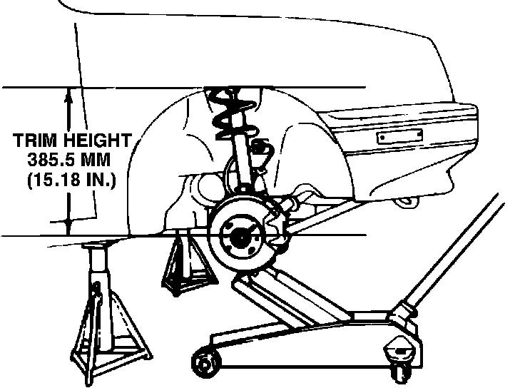 b. When attaching control arm to body, first jack up lower part of arm to 15.18 inches, Fig. 4, then torque attaching bolts to specifications, Fig. 5.