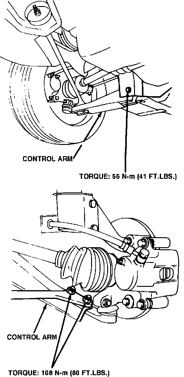 2. Remove lower control arm-to-tension rod attaching nuts and bolts.
