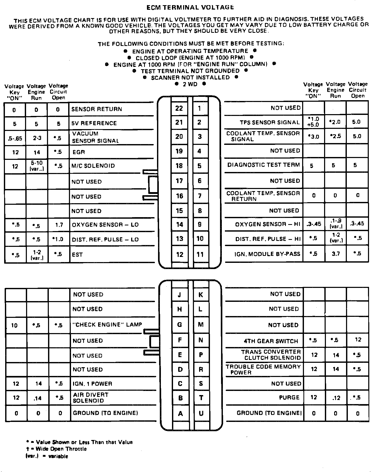 ECM Terminal Identification & Voltage Specifications: