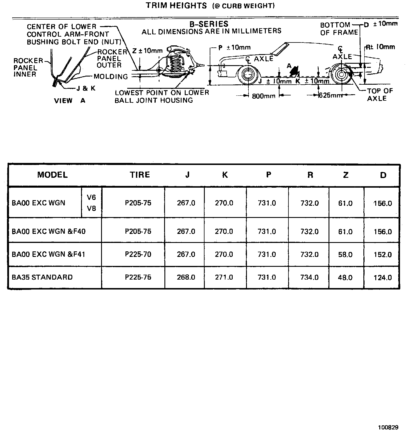 NOTE: Follow the same pattern as stated above for the "Z", "K" & "R" dimensions except: Lift and push on the rear bumper.