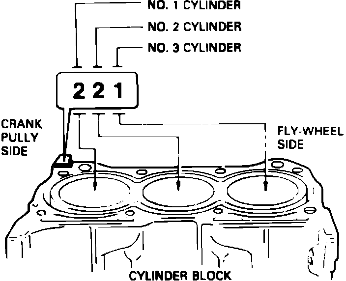 b. The engine block is stamped as shown in Fig. 22, to indicate size of piston in each bore.