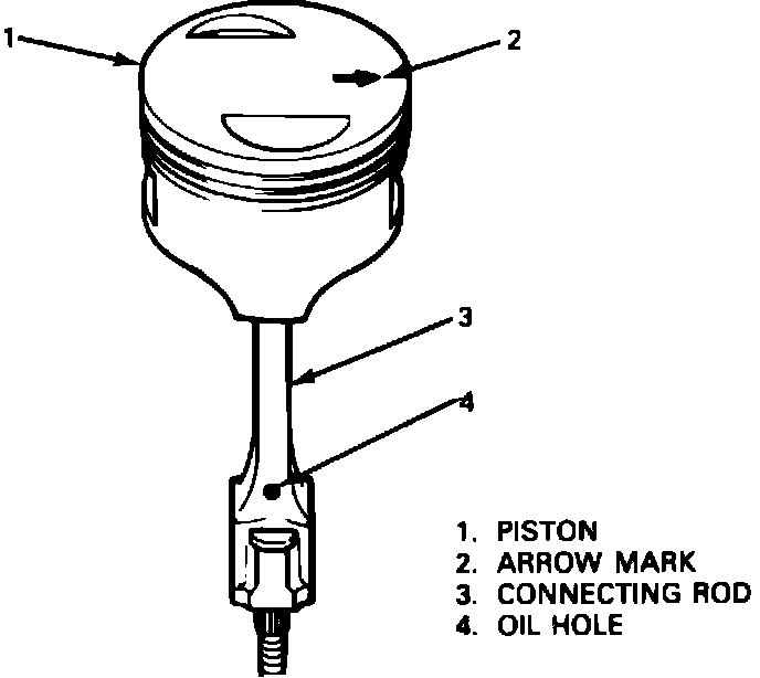 5. Piston pin should fit into piston bore with easy finger push at normal room temperature. Check piston pin and piston pin bore for wear or damage. If badly worn or damaged, replace pin or piston as necessary.