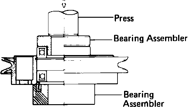 Fig. 2 Installing bearings in rotor. Nippondenso 10 cylinder: