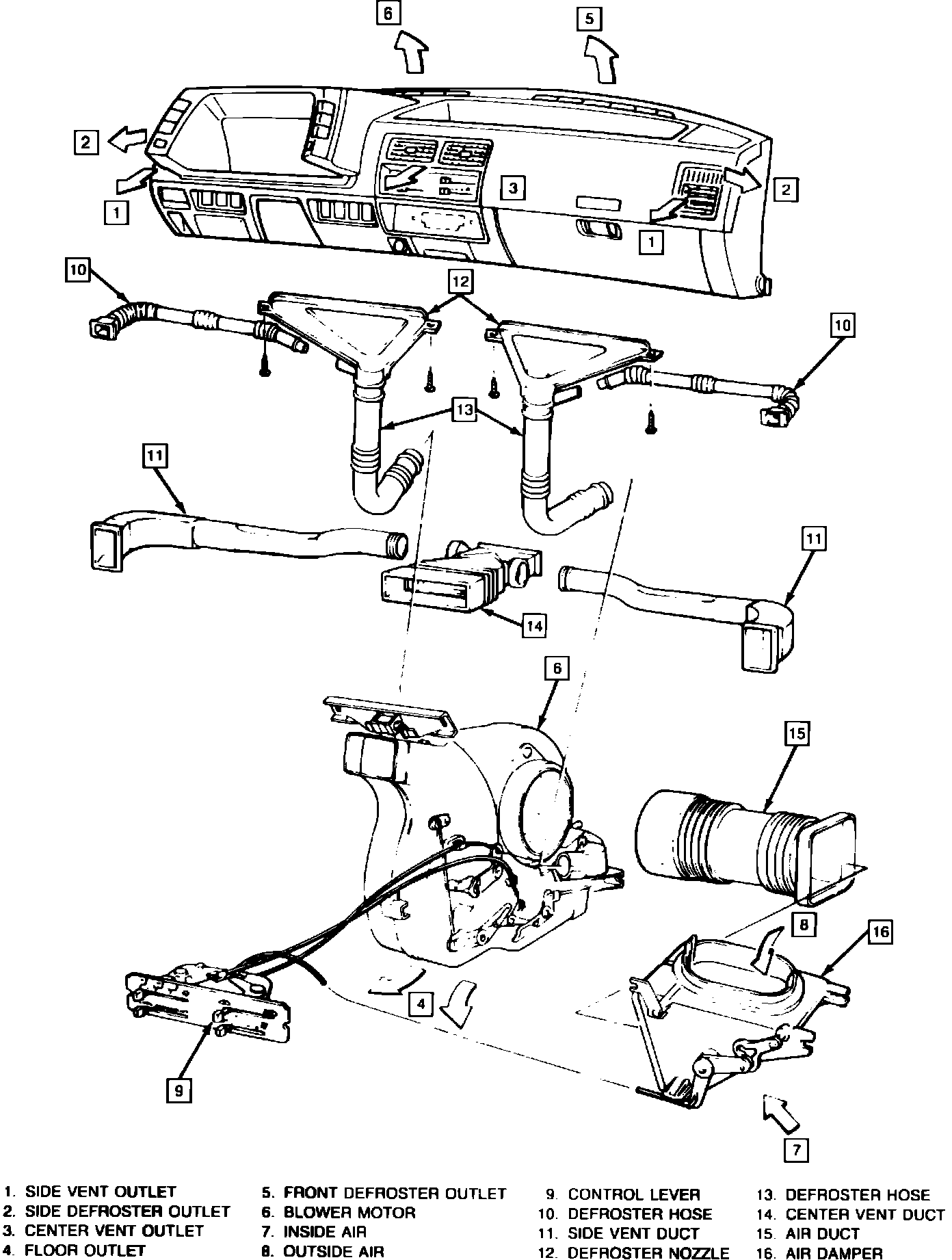 4. Disconnect defroster hoses from heater housing, Fig. 8.
