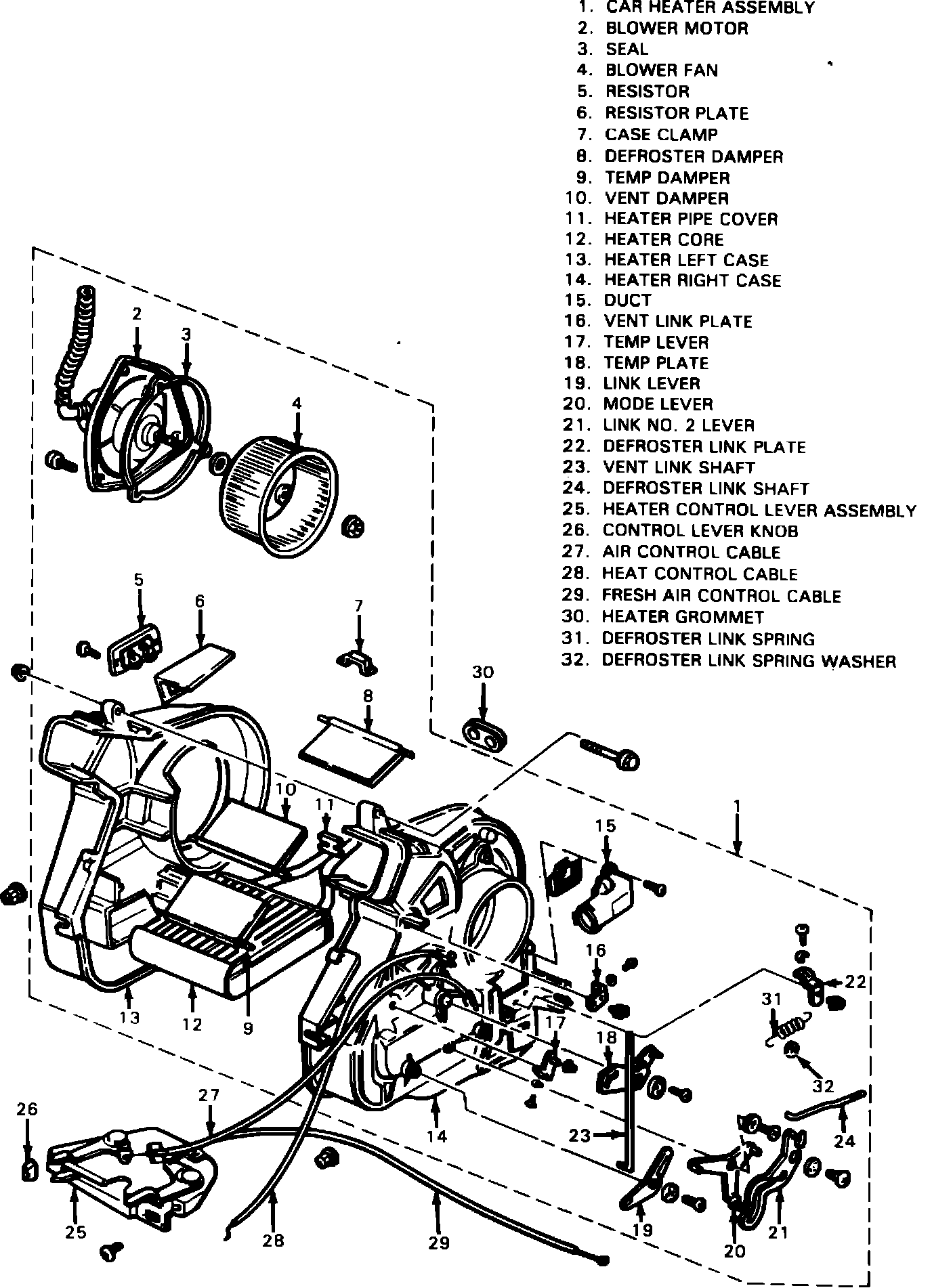 15. Remove retaining clips from heater case halves, Fig. 9.