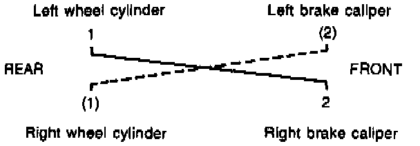 NOTE: Perform bleeding operation starting with wheel cylinder farthest from master cylinder and then at front caliper of the same brake line. Do the same on the other brake line.Bleeding Sequence: