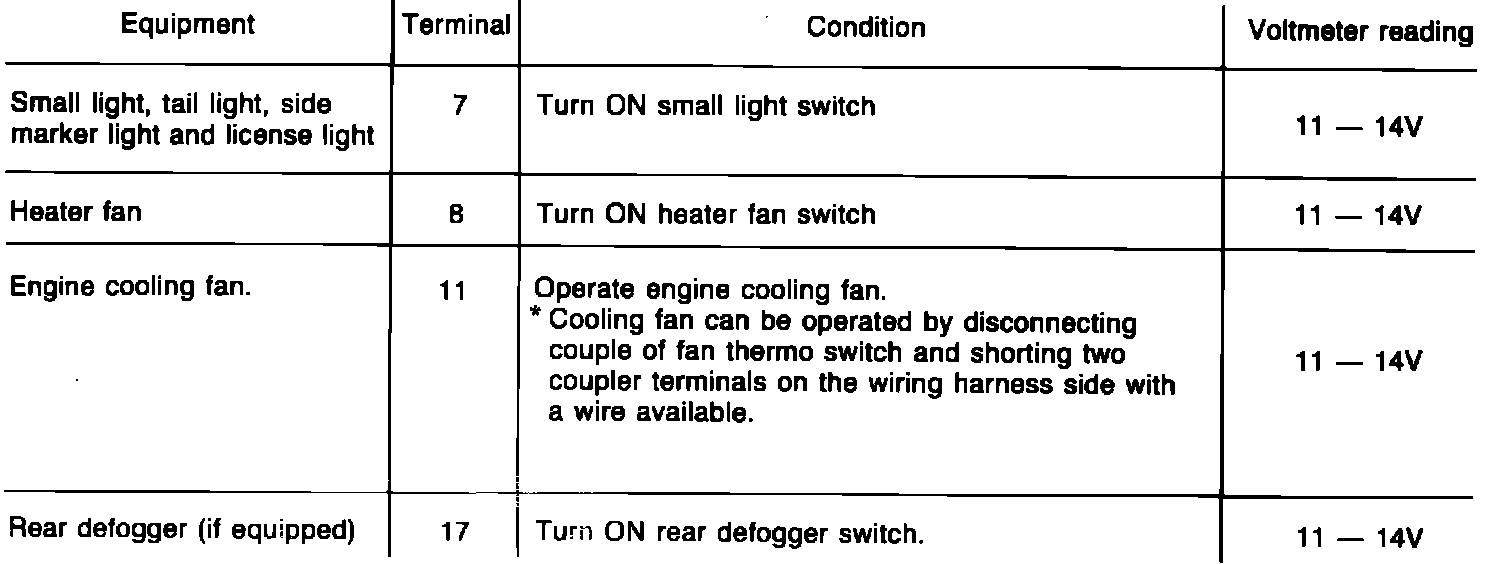 The idle-up system should operate when the running lights, heater fan, cooling fan, or rear defogger are put into operation. If idle-up actuator fails to operate when any of these accessories are switched on, check if proper signal is sent to ECM as follows: