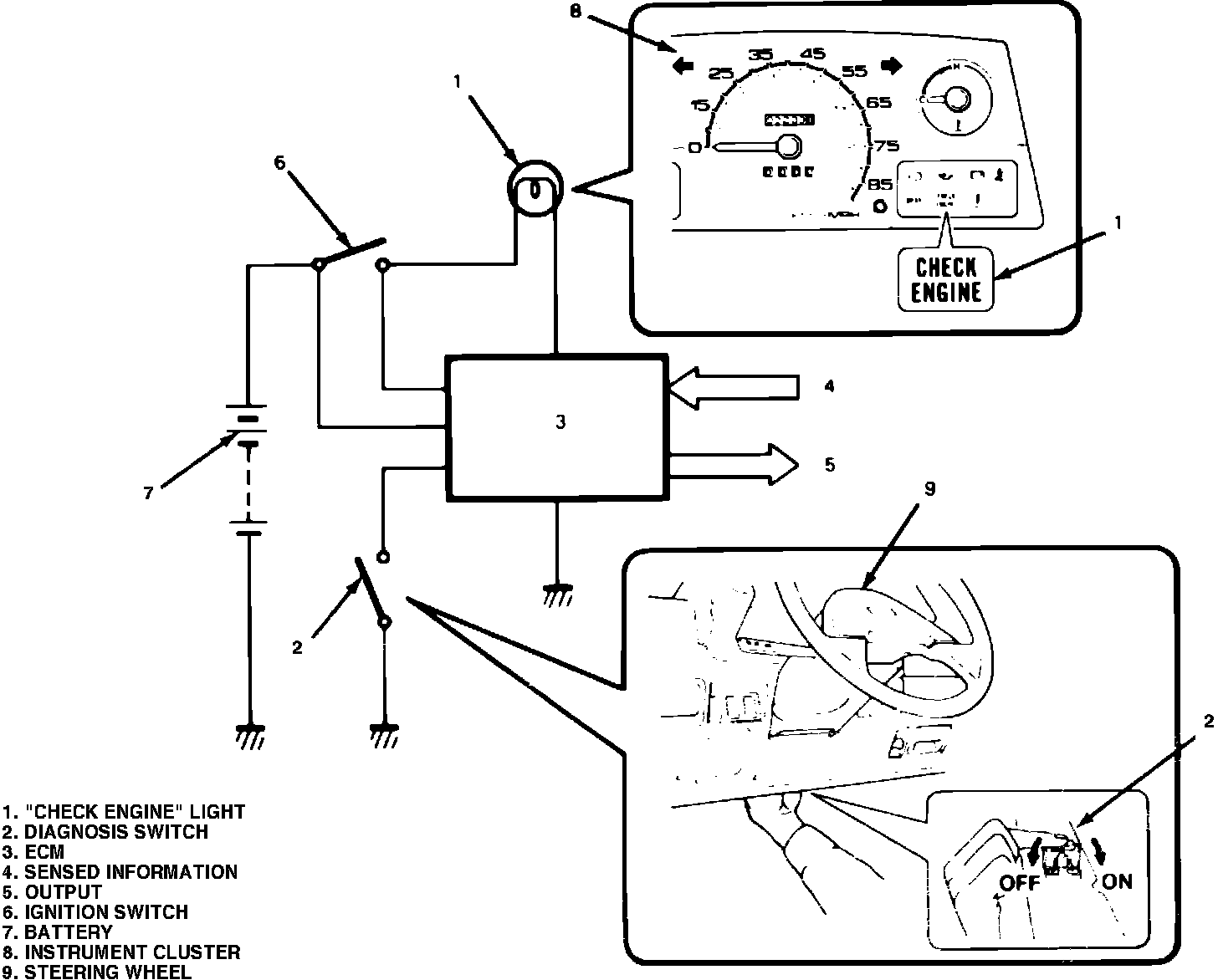 Fig. 38 ``Check Engine'' lamp & diagnostic switch:
