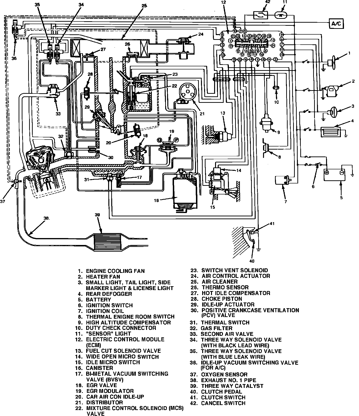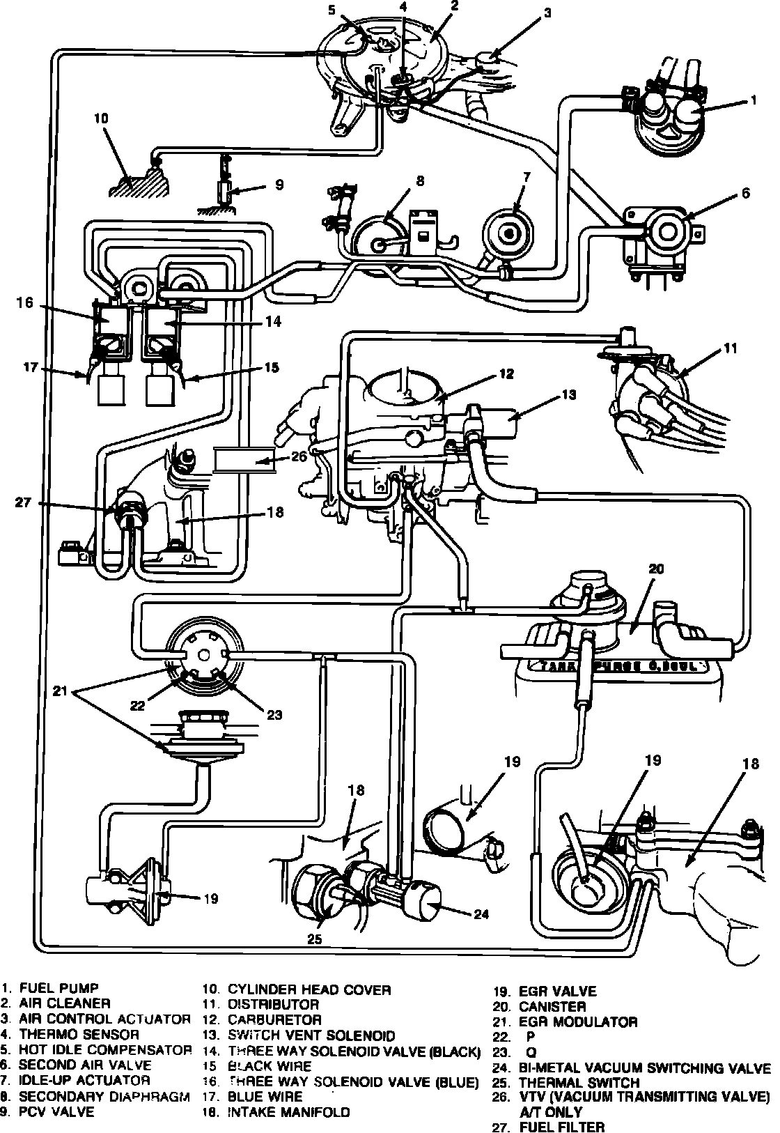 Fig. 2 Emission control system schematic. 1985 - 86 3-61/1.0L, 2 Bbl.: