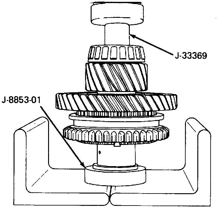 2. Remove rear bearing, 3rd and 4th ears simultaneously using tool No. J-22912-01 and a suitable press.