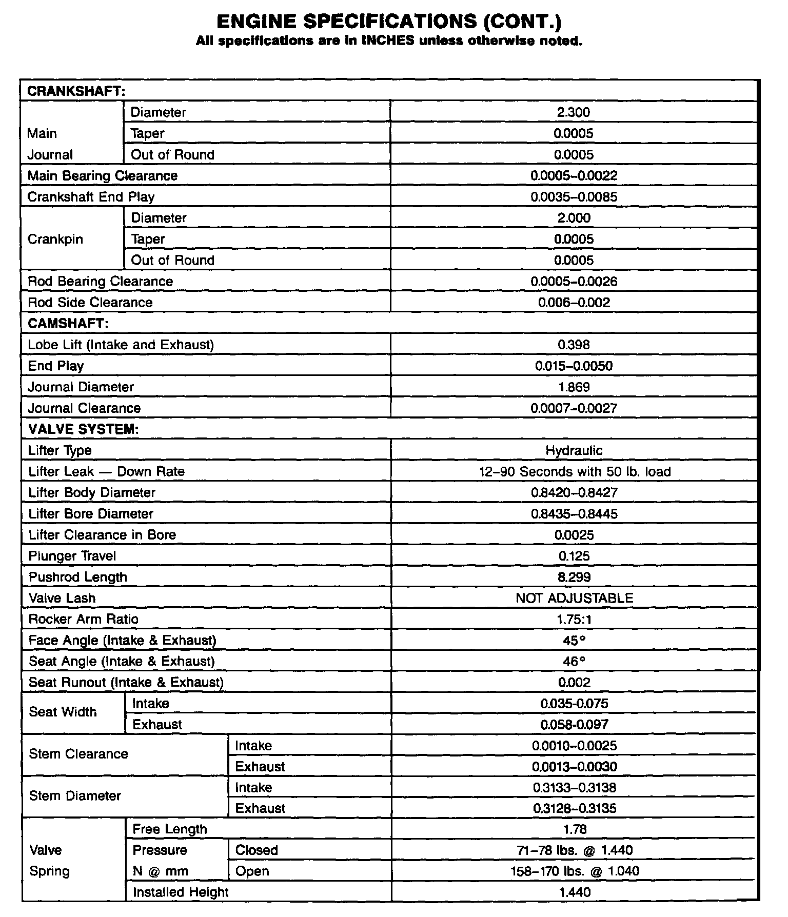 Continued Engine Specifications: