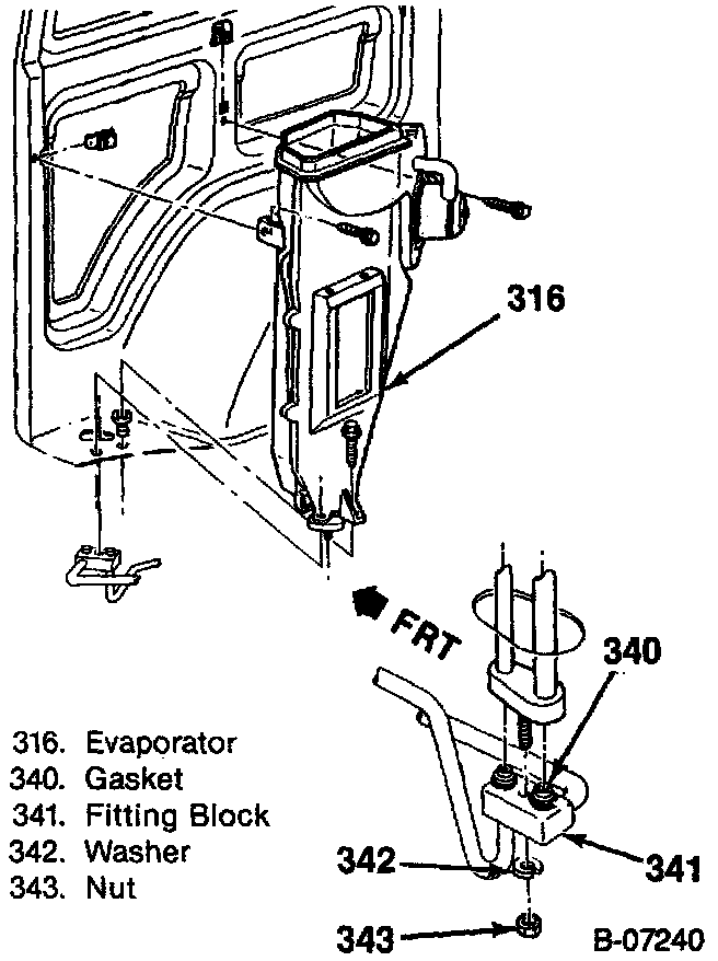 7. Blower motor and evaporator assembly (316).