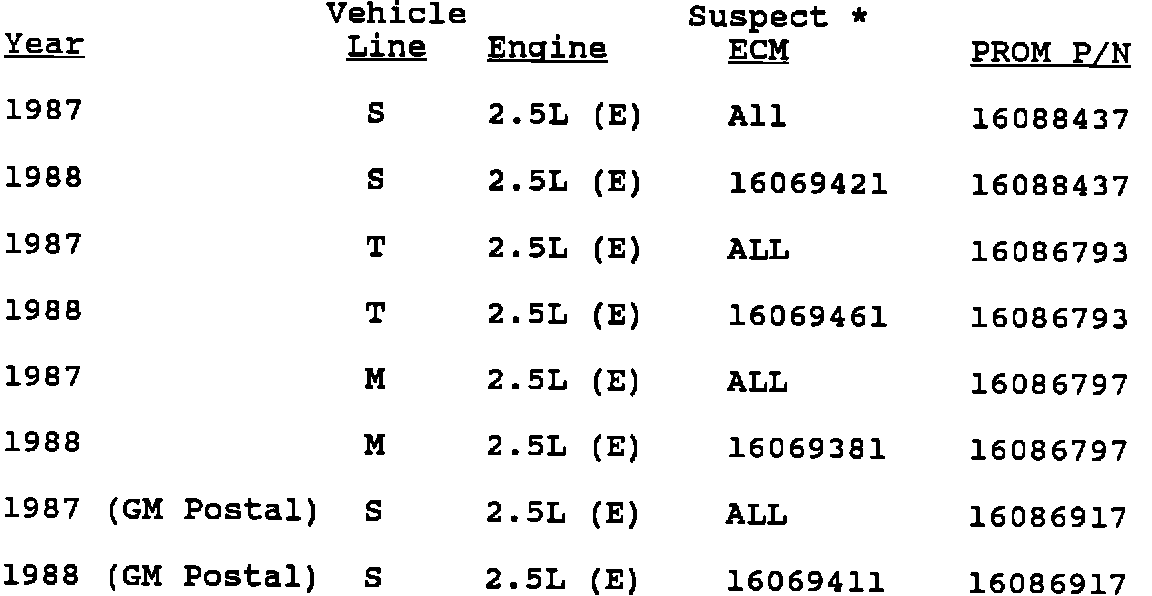 Model and Year: 1987/88 S/T/M TRUCK WITH 2.5L (VIN E) ENGINE