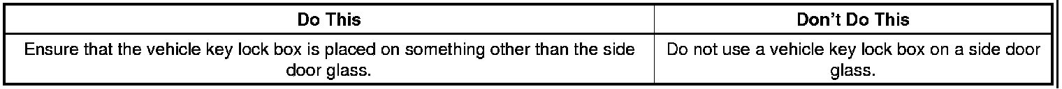 - DO NOT place a vehicle key lock box on a side door window glass.