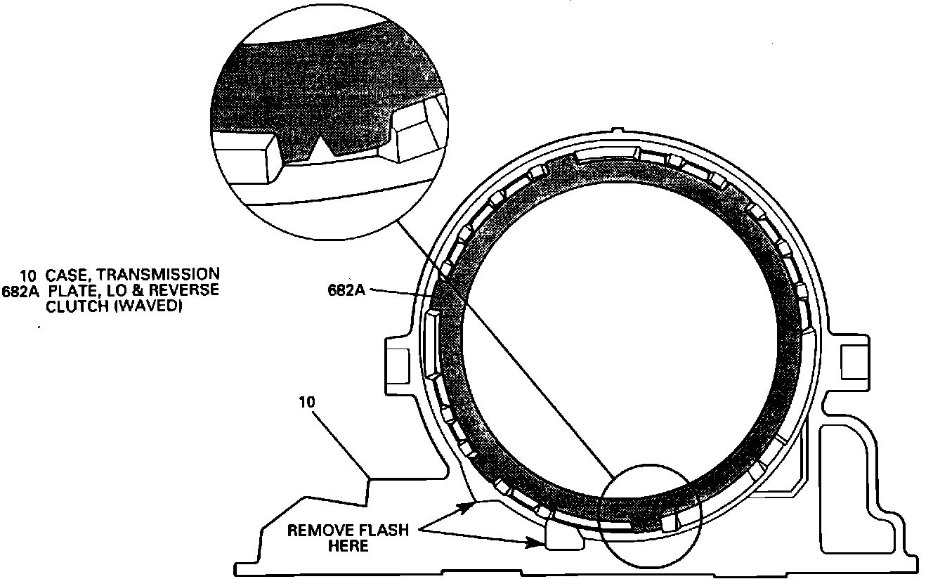 When installing the new wave plate, check for any case flash that may be present in the low and reverse grooves, and use a metal file to remove. See Figure 2 for case location information.